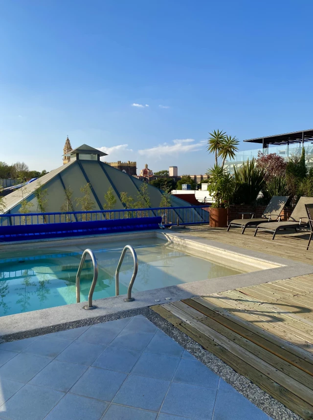 “The rooftop pool overlooking the pyramid felt like a dream. A hidden oasis in Cholula.” -Sofía M.
