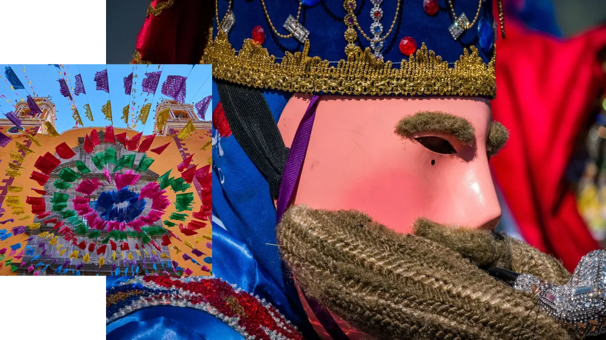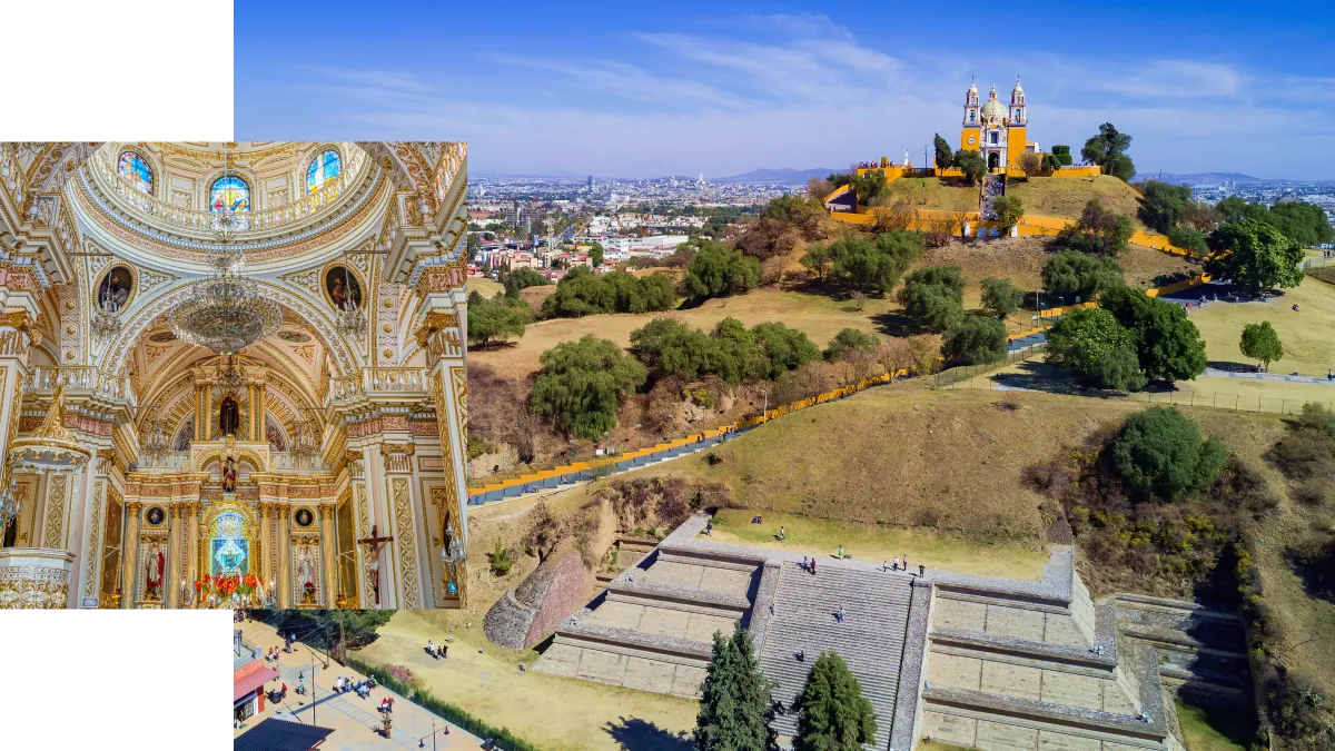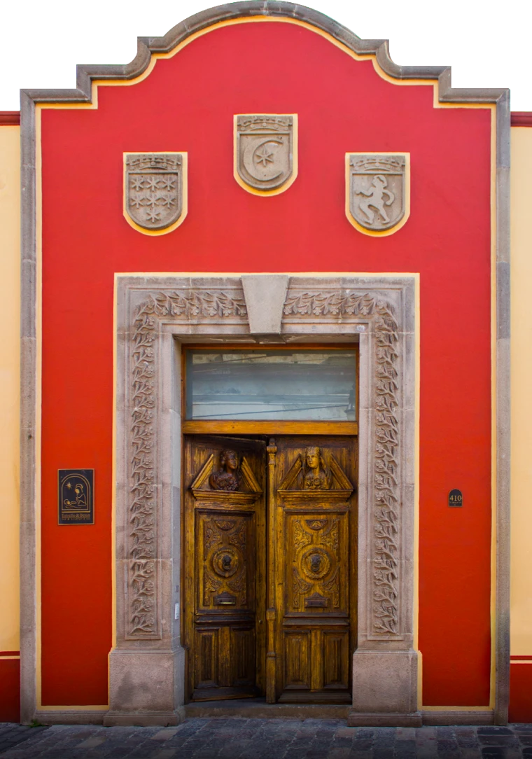 At the entrance, guests are greeted by a hand-carved cantera stone doorway, legend has it, the work of master craftsman José Guadalupe Díaz, crowned by three monolithic shields of the Three Wise Kings. Framed by floral arches, they symbolize, for the people of Cholula, the gateway to paradise.